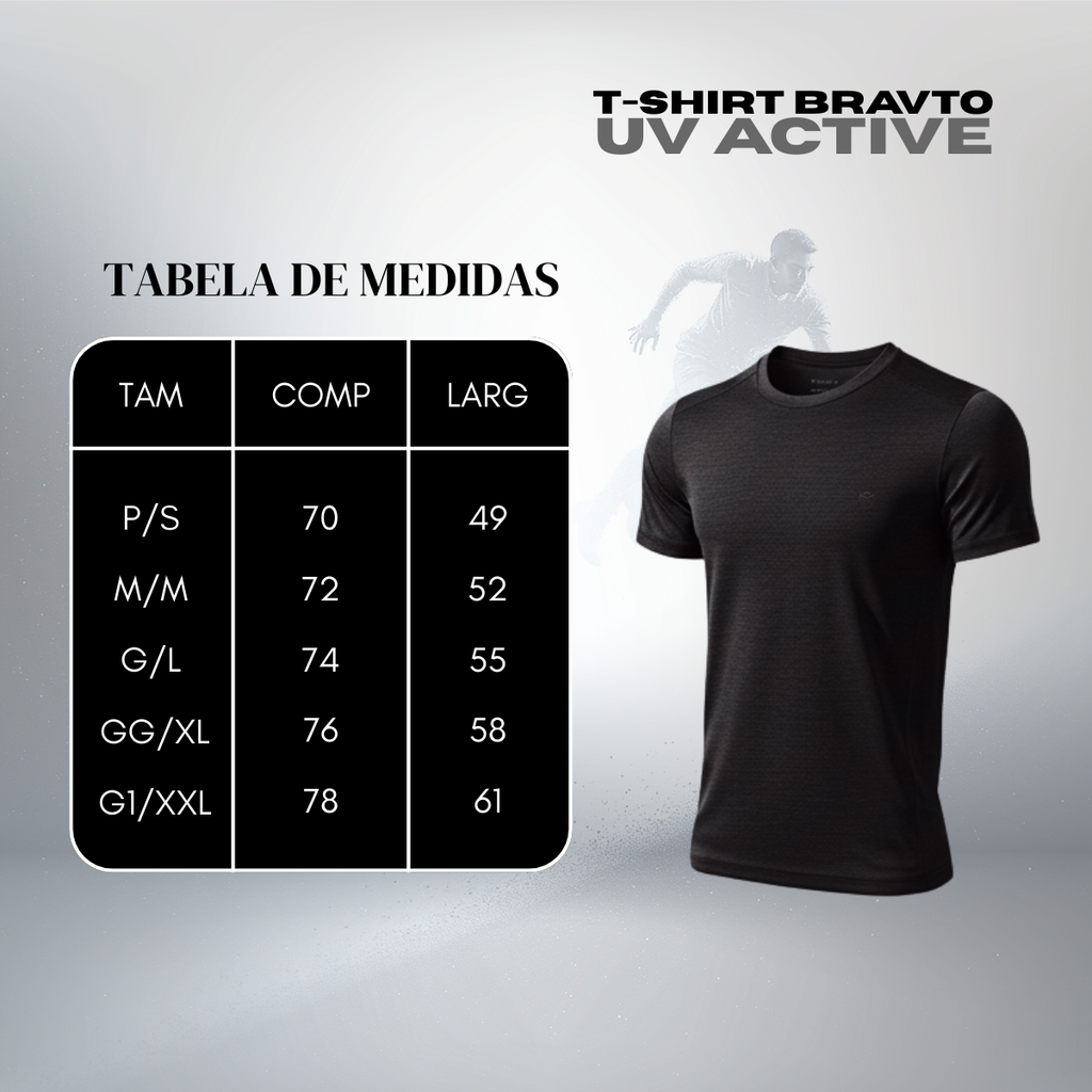 Com tecnologia dry fit, a T-Shirt UV Active proporciona conforto térmico, toque macio e excelente elasticidade, garantindo liberdade total de movimentos. Ideal para corrida, caminhada, praia, trilha, esportes outdoor e uso urbano, é uma peça versátil, funcional e moderna.